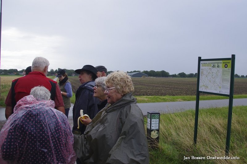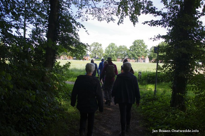 Om 9.15 uur vertrok de groep voor de wandeling van 10 km. Deze keer onder leiding van Willemijn Ahlers. Vanuit de boerderij ging het via Tange al snel richting Holte. Holte is een buurtschap tussen Onstwedde en Wedde. De naam Holte verwijst naar Holt = hout, bos. Hier ligt ook de Onstwedder Holte, een verhoging in het landschap. Deze verhoging dateert nog uit de Saalien, een geologisch tijdvak 238 tot 126 duizend jaar geleden.