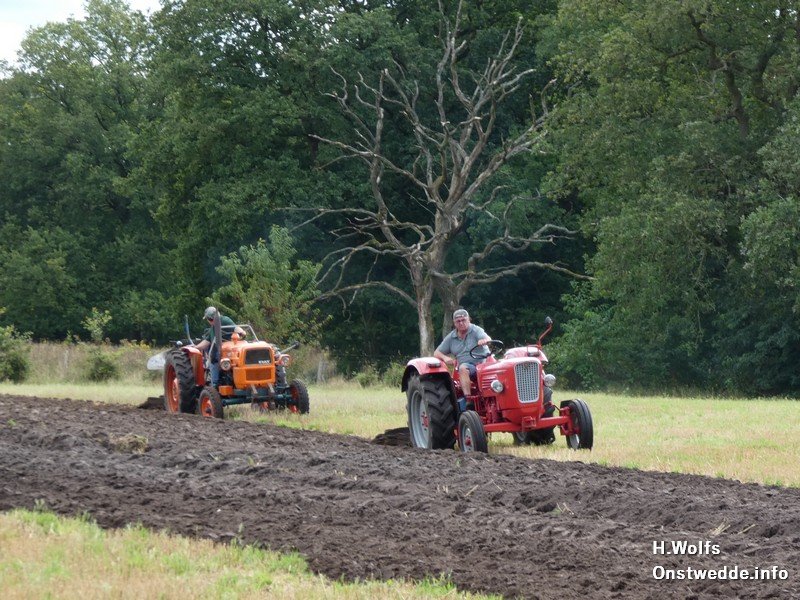 Stichting Bovem met historische trekkers aan het ploegen