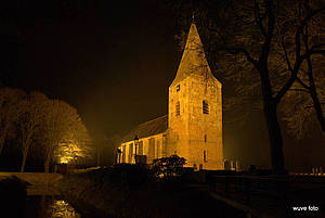 De beeldbepalende 13e eeuwse Juffertoren - van fundament tot en met spits geheel uit stenen opgetrokken - is verbonden aan het 15e eeuwse kerkgebouw van de Hervormde gemeente (lid PKN).