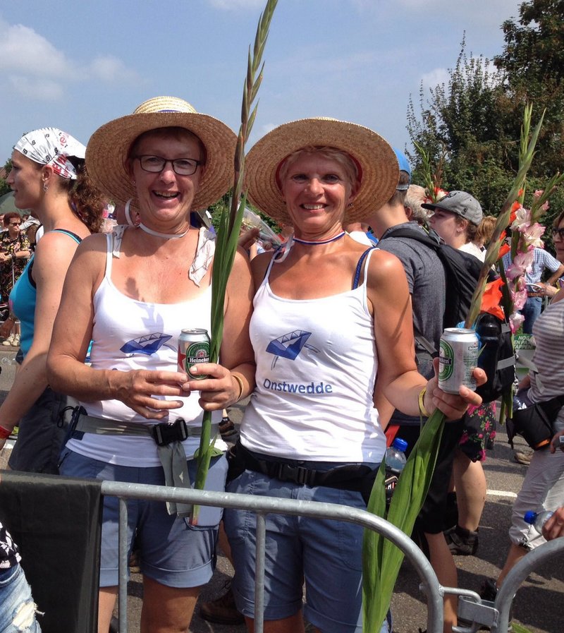 Els Draadjer (R) en Janneke Wubs hebben Onstwedde gepromoot tijdens de 100e Nijmeegse Vierdaagse.