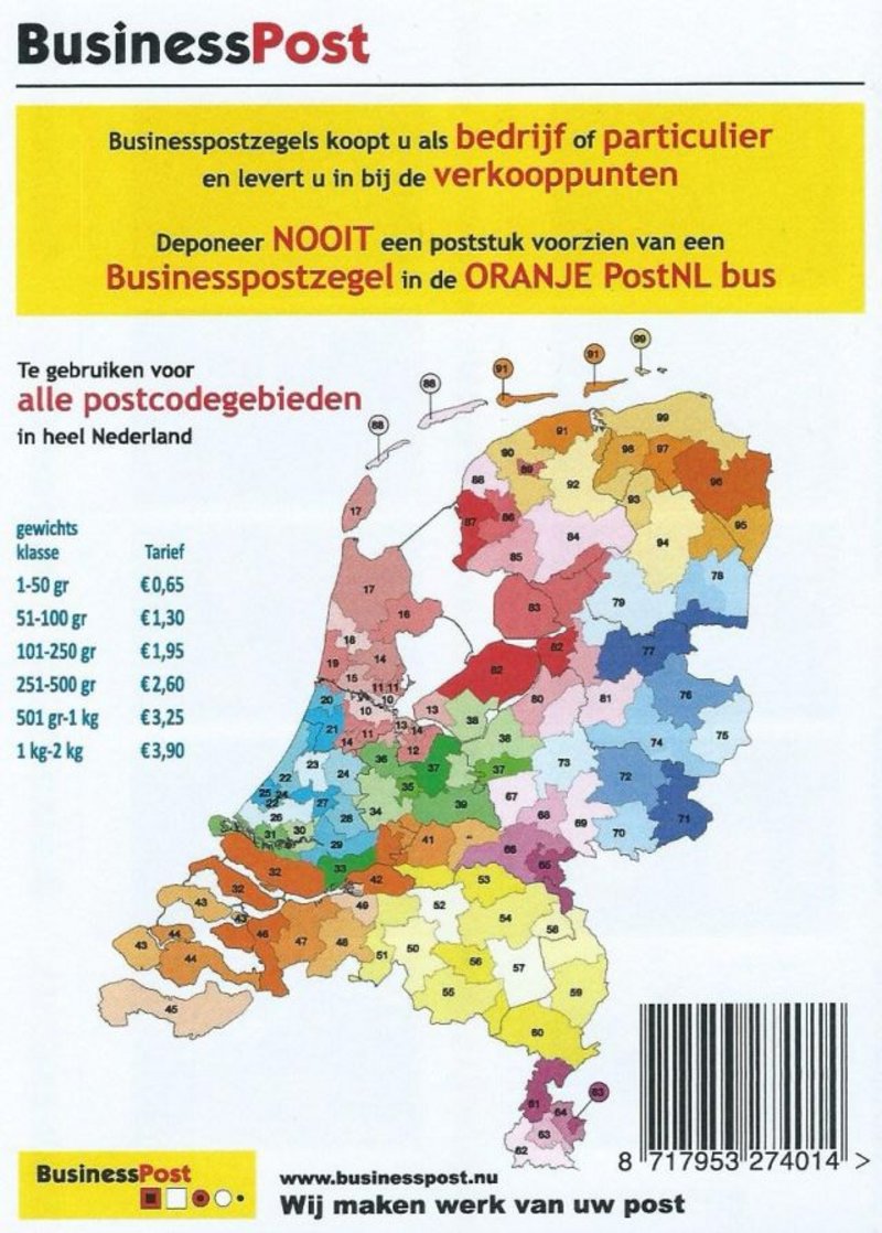 Naar aanleiding van het succes van de decemberzegel van Businesspost is dit jaar gestart met het introduceren van een eigen postzegel. Deze kan het hele jaar door worden gebruikt voor post van alle postcode gebieden in heel Nederland. De postzegel wordt tegen een scherpe prijs worden aangeboden, 10 stuks per vel voor €6,50.