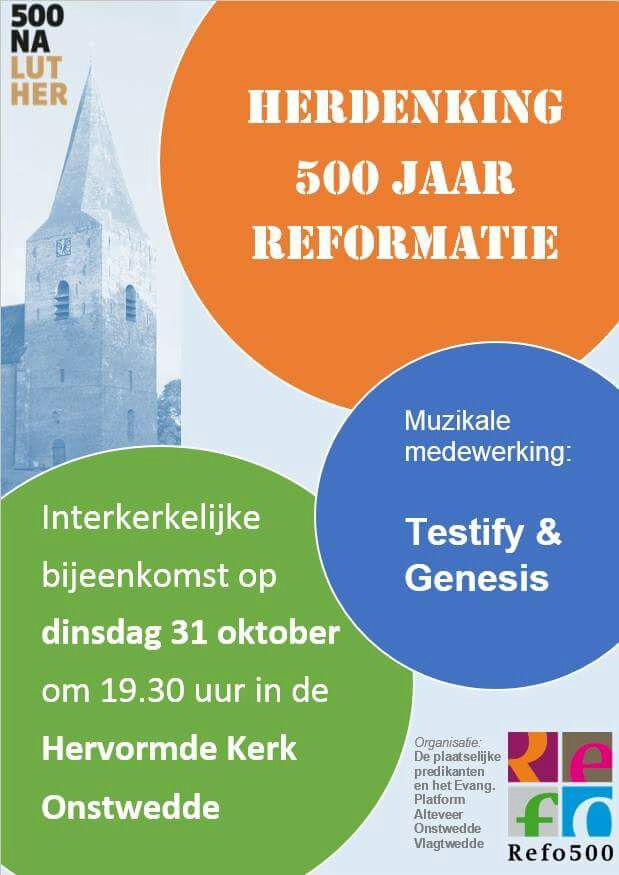 Op dinsdag 31 oktober wordt in de Ned. Hervormde Kerk in Onstwedde een herdenkingsbijeenkomst 500 jaar Reformatie gehouden.