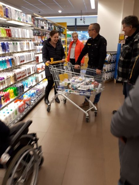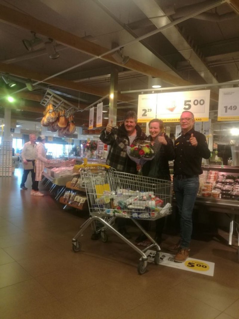 Omdat er -helaas- mensen in onze omgeving afhankelijk zijn van de voedselbank heeft Anja besloten om de opbrengst van het 1 minuut gratis winkelen te doneren aan de voedselbank. Vrijdag 9 maart heeft ze met de 1 minuut gratis winkelen 233,45 euro aan producten bij elkaar kunnen verzamelen.