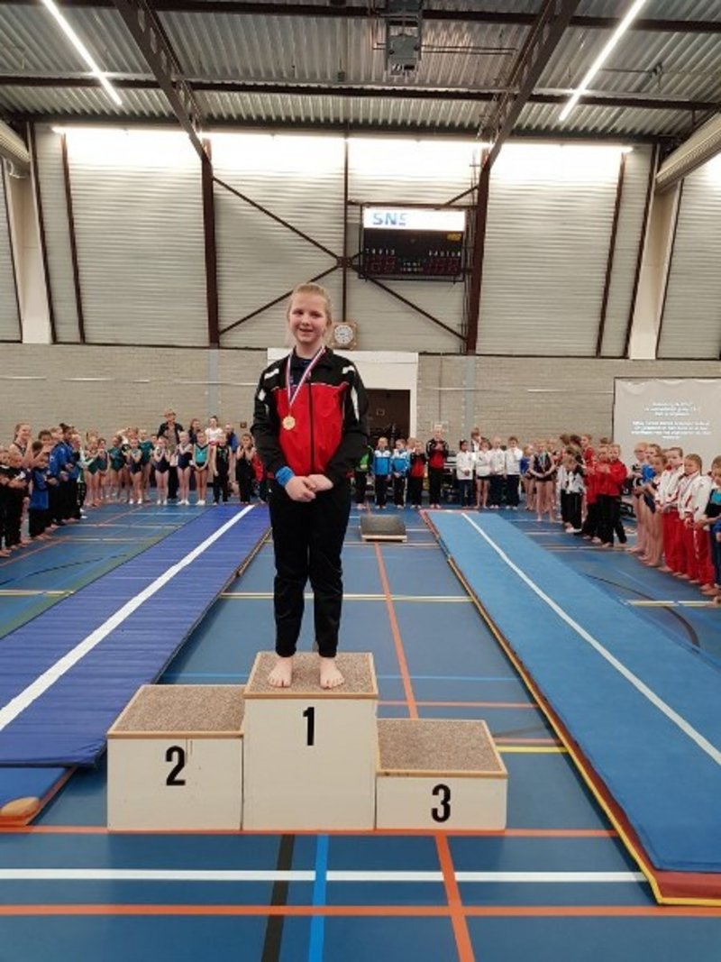 In de eerste wedstrijd deden Linsey Huls en Rachel Kuiper mee. Ze hebben een goede wedstrijd gedaan en vooral de brug ging bij beide meiden heel erg goed! Helaas moest Rachel een podiumplaats aan zich voorbij laten gaan doordat ze verkeerd uit kwam voor haar eerste sprong.