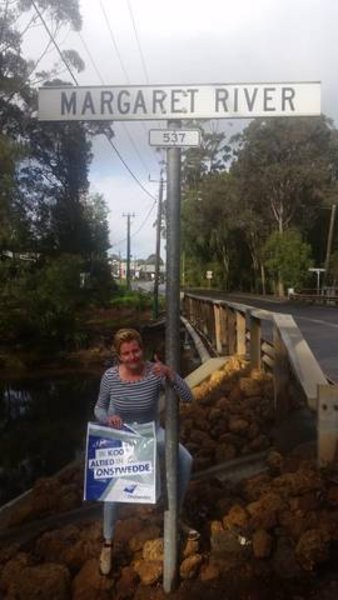 Ook in Down Under kent men Onstwedde nu. De foto is gemaakt in het zuiden van Australiƫ in het plaatsje Margaret River.