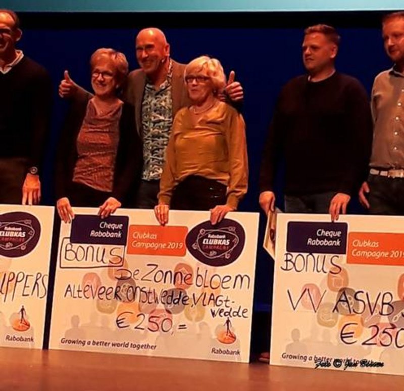 De Zonnebloem afdeling Alteveer - Onstwedde - Vlagtwedde kreeg tijdens de uitreiking van de Rabo clubkas Campagne, bovenop hun normale toezegging, een bonus van € 250.00.