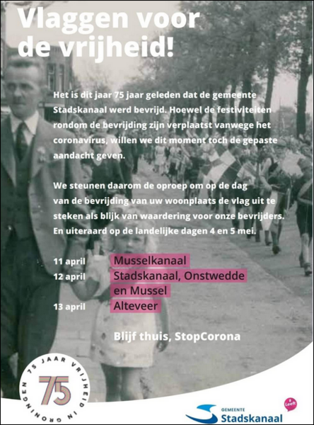 Het is dit jaar 75 jaar geleden dat de gemeente Stadskanaal werd bevrijd. Hoewel de festiviteiten rondom de bevrijding zijn verplaatst vanwege het coronavirus, willen we dit moment toch de gepaste aandacht geven.