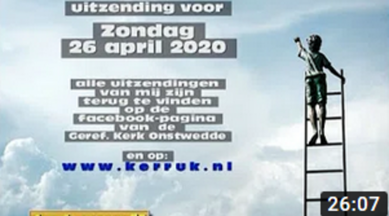 Kijk en luister mee naar een kerkdienst van zondag 26 april 2020 vanuit de Gereformeerde kerk.