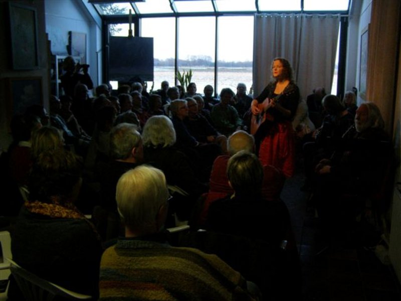 Het schildersatelier van Geert Schreuder puilde zondagmiddag uit van de muziekliefhebbers.