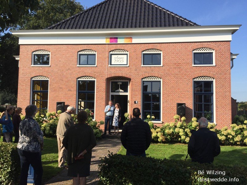 Rene en Gerda Nijenbrinks, de eigenaren, onthulden met dorpshistoricus Klaas Meijer de nieuwe naam van het pand: Erve up ten Thije. De boerderij die stamt uit 1905, staat op een beeldbepalende plek in Onstwedde. Hij stond jaren leeg, verpauperde zienderogen en ontwikkelde zich tot een rotte kies.