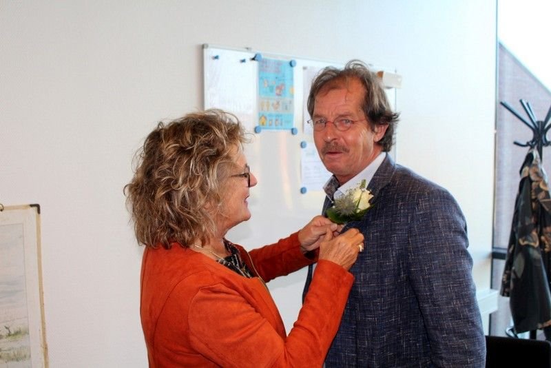 ’s Middags werd hij, samen met zijn vrouw, langs verschillende locaties in Onstwedde gereden. Hij werd daar opgewacht door genodigden die een rol hebben gespeeld in zijn onderwijscarrière. Aan het eind van de dag werd deze afscheidstournee afgesloten met alle (oud)collega’s in Roegh eten en drinken in Vlagtwedde. Hier kreeg hij van zijn team een mooie pentekening, gemaakt door Geert Schreuder, met daarop de scholen in en om Onstwedde waar hij gewerkt heeft.