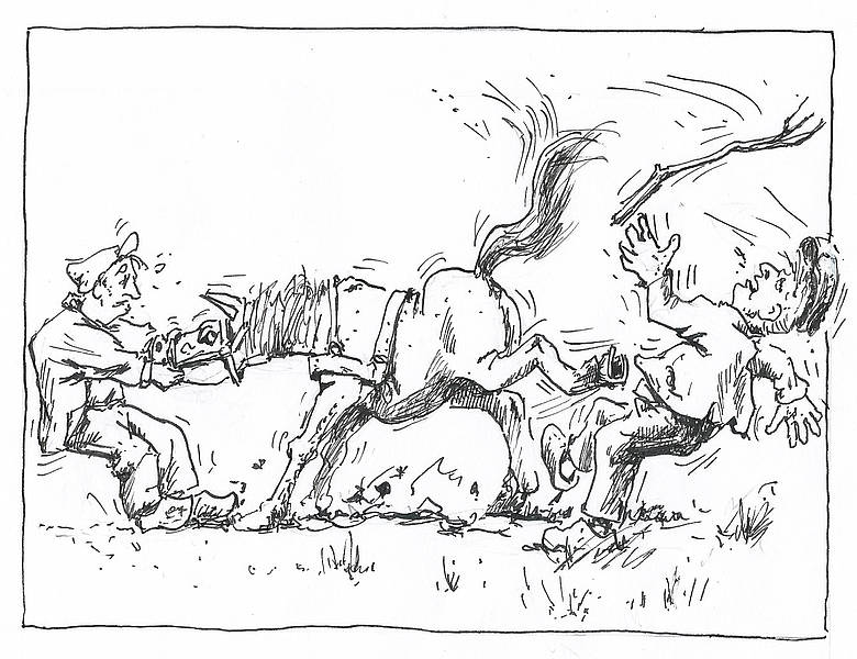”Och, mien jong. Dat Onstwedders vrezelek roeg binnen, dat wait toch hoast elk en aine ! Ze zeggen doar ja ‘pokkel’ tegen de ‘pinze’ ! Nou, den waist toch genog ?"