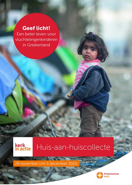 Kerk in Actie, die de huis-aan-huiscollecte organiseert, helpt de vluchtelingenkinderen in Griekenland met voedsel, kleding en onderwijs en probeert ze op een betere plek te krijgen. Op meer dan zeshonderd plekken gaan collectanten in de eerste week van december langs de deuren. “Ik vind het vreselijk wat die kinderen in Griekenland meemaken. Ze hebben er niet om gevraagd en part noch deel aan de situatie”, vertelt een collectant. “Als ik dan aan mijn eigen kinderen denk, kun je toch alleen maar dankbaar zijn dat ze hier geboren zijn, en niet daar. Daarom collecteer ik, en ik hoop dat mensen gul geven. Als we allemaal iets kleins doen, kunnen we met elkaar iets groots neerzetten!”
