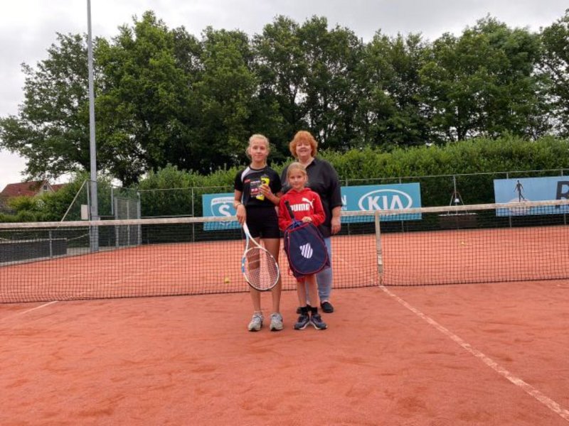 Deze week heeft het 200ste lid zich aangemeld, Lotte Migchels. Zij kreeg een tennistas aangeboden. Haar zus Rianke was nummer 199 en kreeg een bidon met een demper voor in de racket.