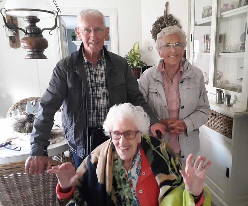 Harm Wubs en Lammie Meems-Maarsingh hebben onlangs hun oude juf van de Hervormde lagere school weer ontmoet. Mevrouw Elsa Jullens-Venema is 102 jaar oud en bracht een bezoek aan Onstwedde. Ze was o.a. te gast in het huis, waar ze destijds op kamers woonde op Kerklaan 3, bij het gezin van haar collega Bram Elbrecht.