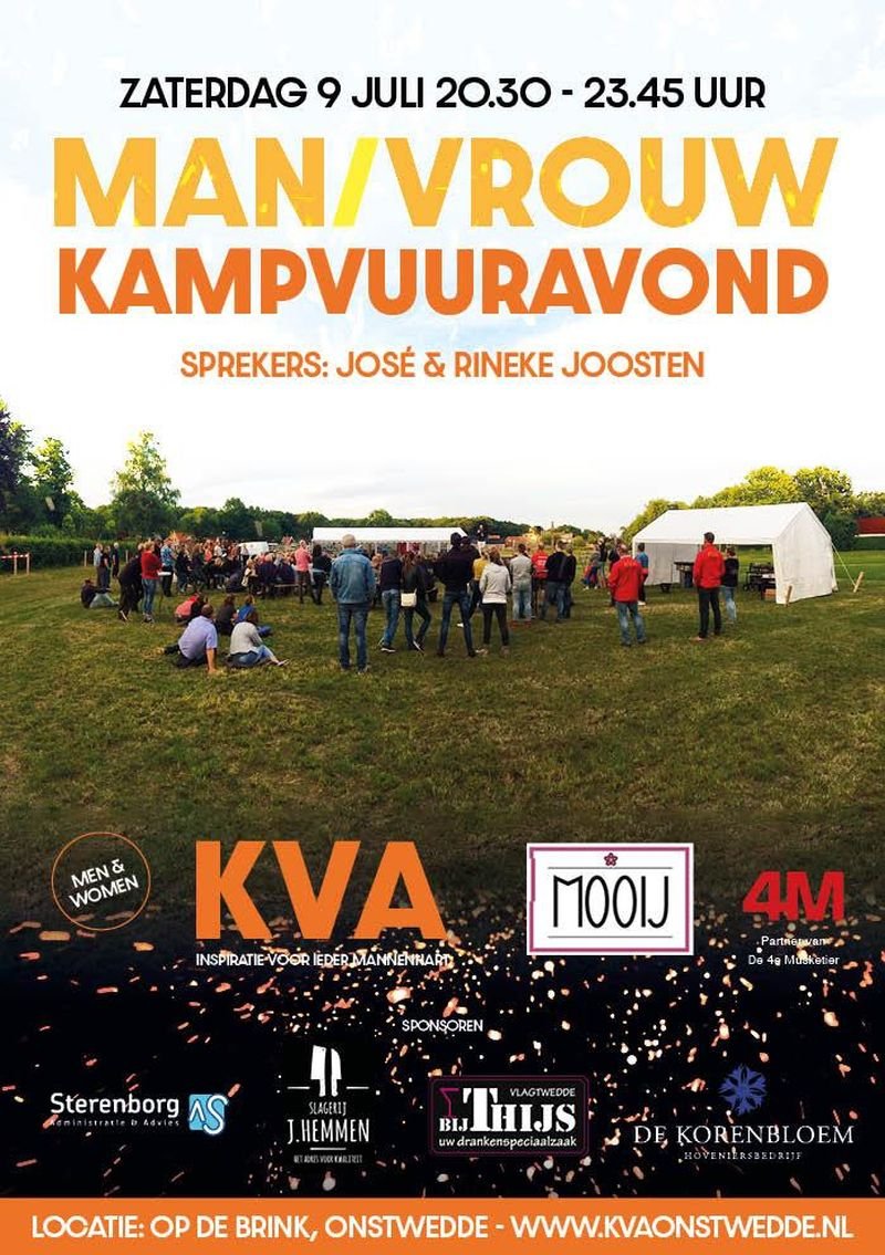 Het doel van deze avond is enerzijds om op een gezellige en laagdrempelige manier met mannen en vrouwen uit de regio in contact te komen, met elkaar te praten en naar elkaar te luisteren onder het genot van koffie en thee bij een kampvuurtje. Ook hebben we deze avond een vrouwelijke en mannelijke spreker - Rineke en José Joosten - met als thema “Stay connected”. Hoe is onze relatie in de huidige samenleving en de tijd in en na corona, als man en vrouw, als christenen onderling, de vriendschappen, jongeren en ouderen?