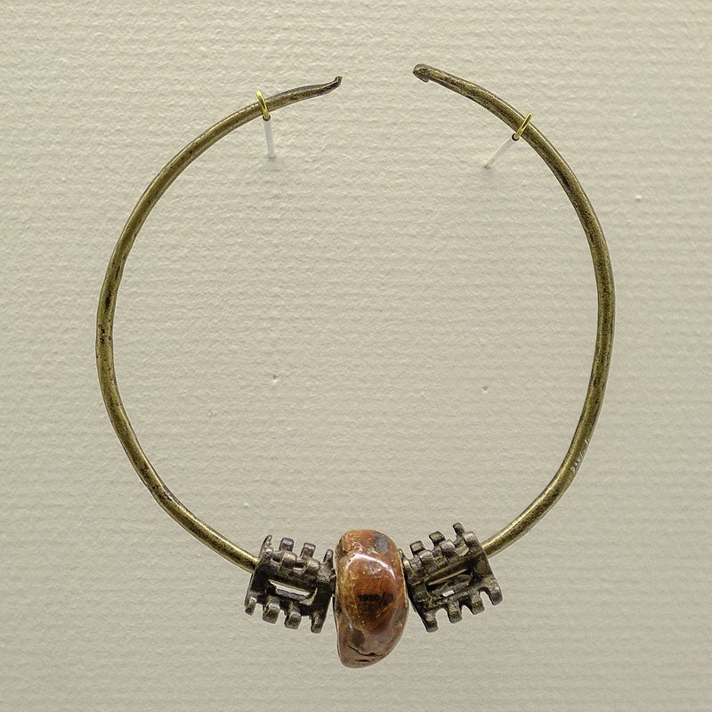 Wel, de vondst die we vandaag centraal stellen werd gedaan in 1919 door Roelf Meijer (geen familie van ondergetekende) op de 2e Barlage, zo’n 30 cm. onder de oppervlakte. ’t Is een bronzen halsring uit ca. 500 v. Chr. met twee bronzen schuifstukken, waartussen een groot doorboord stuk barnsteen zit. ’t Is een imitatie van een zgn. ‘wendelring’ of ‘spiraalring’. Die werden in de Bronstijd door de wat sjiekere vrouwen gedragen. Roelf Meijer z’n vondst, in onze streek, mag gerust een bijzondere vondst genoemd worden. ’t Is niet voor niets dat deze halsring tot op de dag van vandaag nog veel bekendheid geniet.
