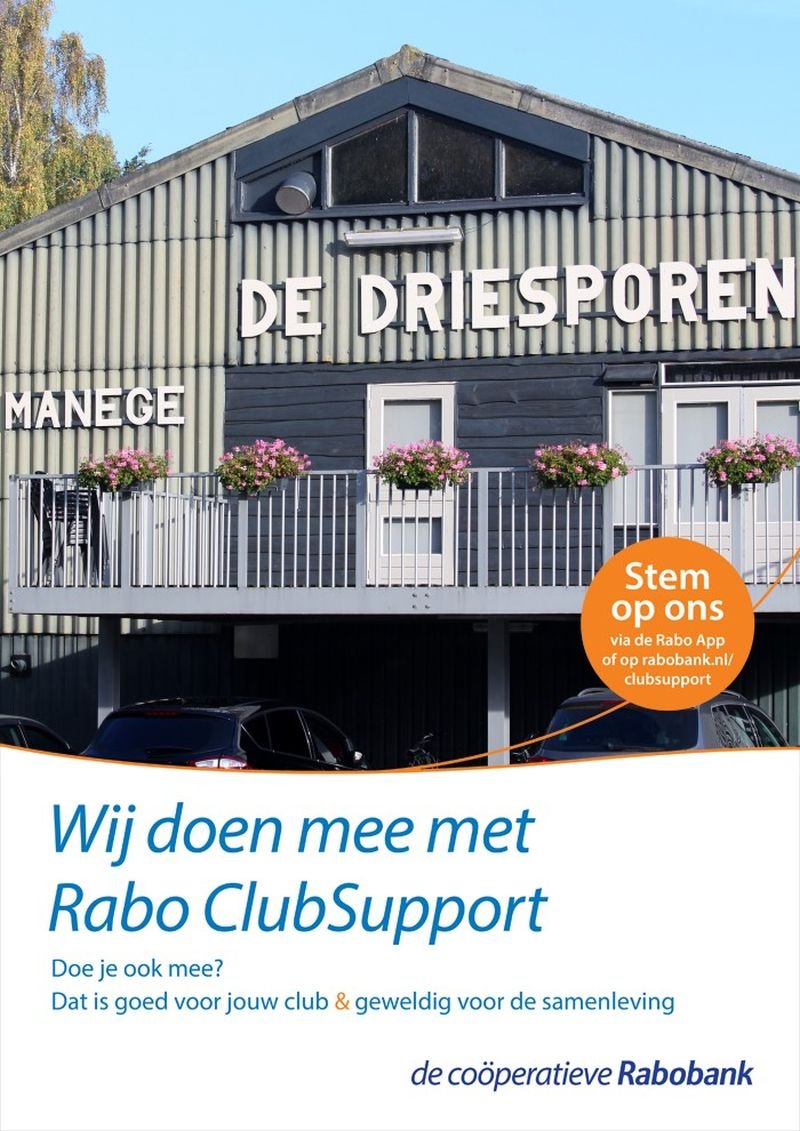 Manege De Driesporen doet ook dit jaar weer mee met de Rabo Clubsupport-actie.