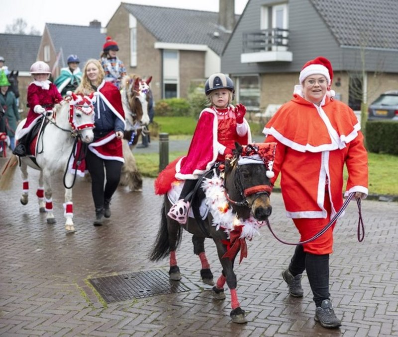 Zo'n 40 combinaties, van ruiters, menners en pony's aan de hand gingen in hun mooiste kerstoutfit op pad om tijdens de donkere dagen voor kerst te zorgen voor een lach op het gezicht bij de vele toeschouwers. Naast de kerstmannen en hun elfen, was dit jaar ook Dickens stijl en de foute kersttrui een favoriet thema. Zelfs de honden moesten er aan geloven en zaten in kerstpak op de wagen!