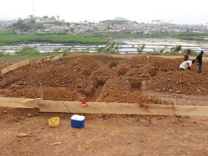 bouw van een hotel/restaurant begonnen onder de bezielende leiding van onze Ghanese zakenpartner Emmanuel Parker Wright. Het wordt een hotel met, voorlopig :-) zestien kamers, restaurant, zwembad etc. De verwachting is dat het hotel, het Golden Hill Parker Hotel, in 2015 geopend kan worden. Wilt u onze avonturen in Ghana volgen kijk dan op onze weblog.