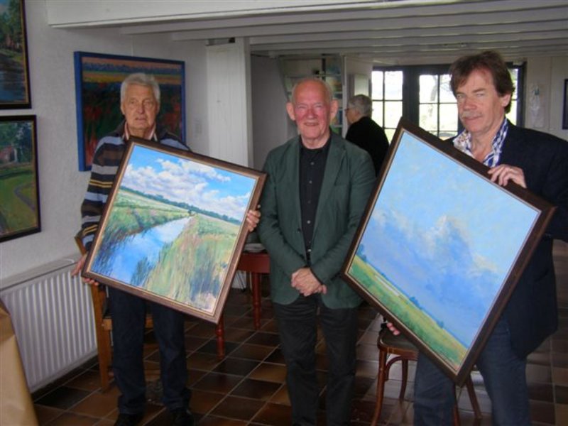 De heren Van der Veen en Brood kregen ter herinnering aan hun gigantische klus elk een schilderij van de hand van Geert Schreuder.