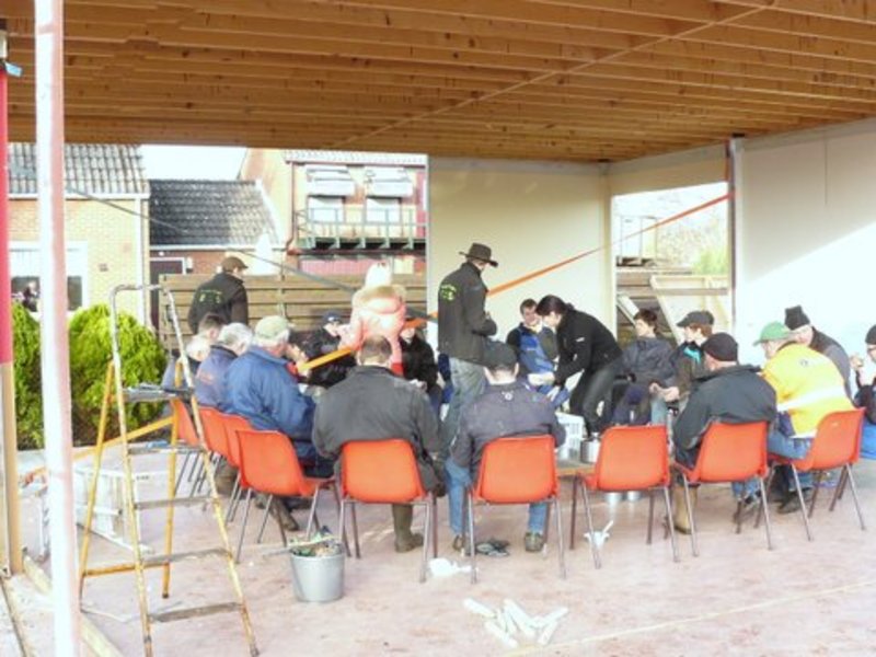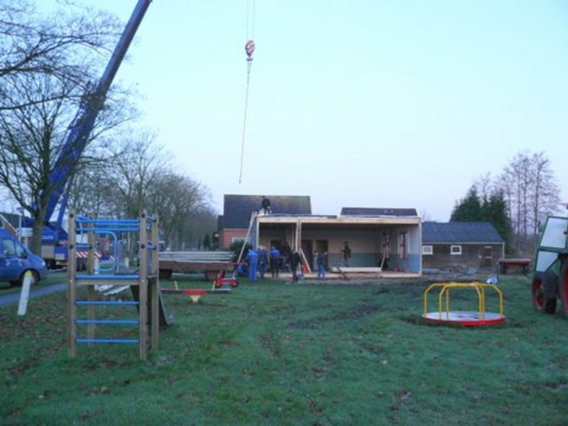 Terwijl Boerderij Hooghei nog druk bezig is met de opbouw van de onlangs aangekochte kantine van Tennisvereniging Uneswido is afgelopen maandag met man en macht de nieuwe accommodatie opgehaald. Het gebouw heeft dienst gedaan als een onderkomen van een buurtvereniging. De buurtvereniging heeft zich onlangs opgeheven waardoor deze accommodatie beschikbaar kwam.