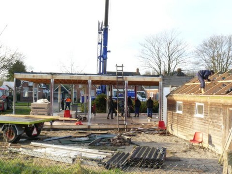 Met zo’n twintig klussers en veel materieel is het gebouw gedemonteerd, opgeladen en vervolgens verplaatst naar Onstwedde waar binnenkort wordt begonnen met het herplaatsen van het gebouw.