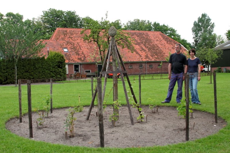 Hans en Lian hebben geen moment spijt van de aankoop van de Boerderij. Er is al heel hard gewerkt. Het dak van de boerderij is vernieuwd en ‘op de deel’ staan de karkassen van drie appartementen die Hans verder zal afbouwen. Het is erg mooi om te zien dat veel oude materialen uit de Boerderij weer worden hergebruikt. Alle stenen van de buitenmuur zijn afgebikt om deze voor de nieuwe muur te hergebruiken. Een tijdrovende klus maar wel met een prachtig resultaat. In de tuin zijn inmiddels diverse (fruit)bomen geplant, daar is een plan voor gemaakt door Landschapsbeheer Groningen.