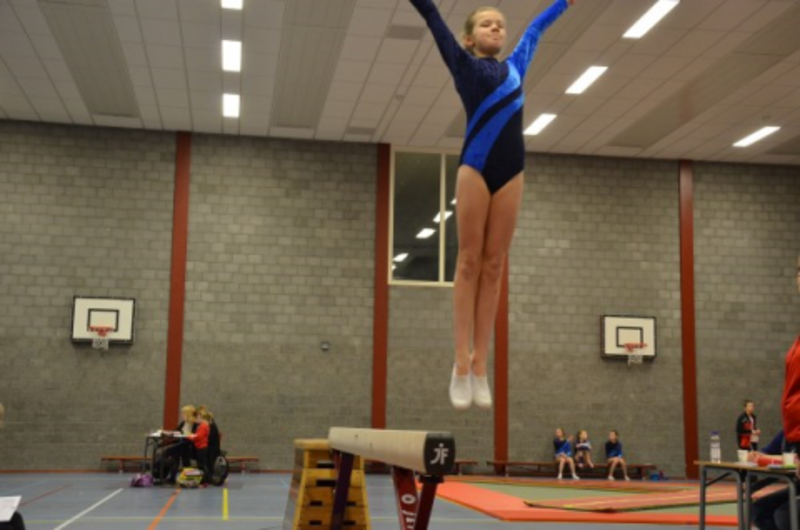 Om 8:30 uur waren de eerste zenuwachtige kinderen binnen om hun oefeningen op vier verschillende toestellen te laten zien voor een jury. De kinderen werden door Heleen Buntjer en met ondersteuning van 'helpers' langs alle toestellen geloodst.