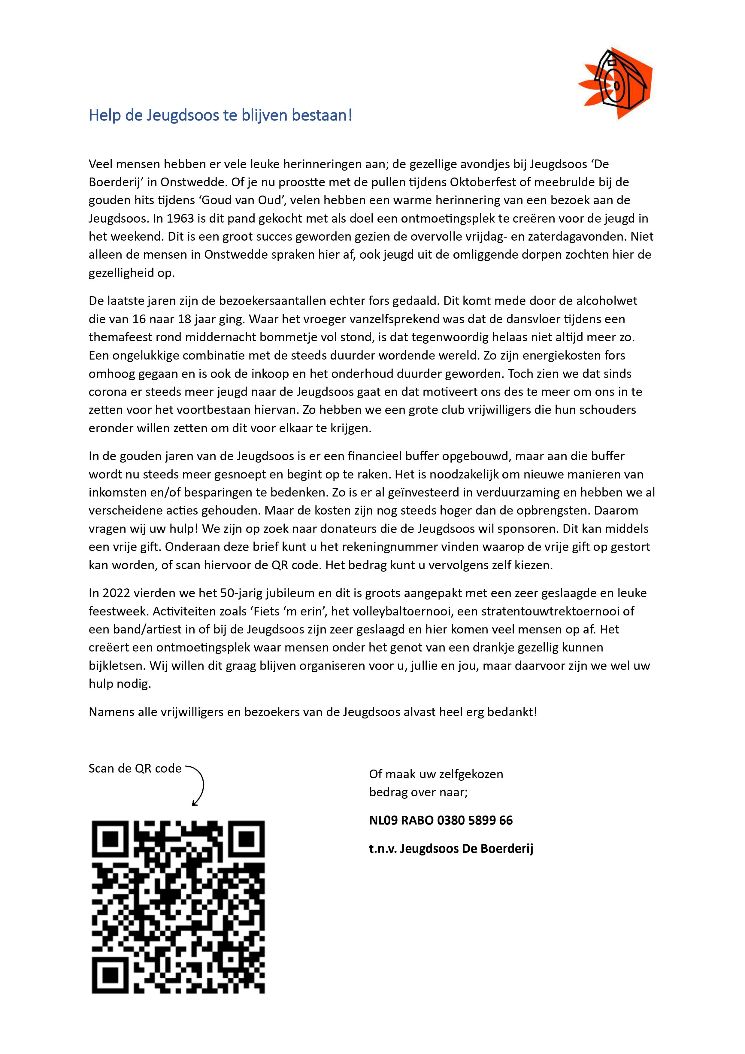 Door een gift over te maken helpt u de jeugdsoos in Onstwedde.