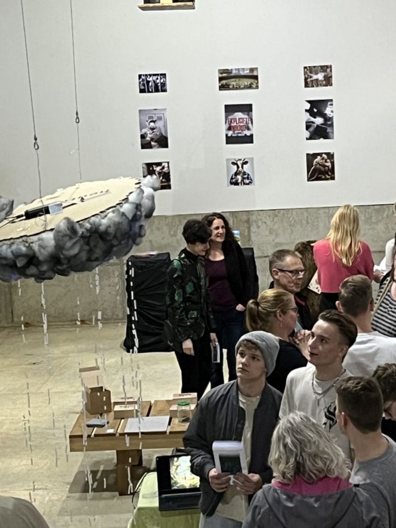 De opening werd prachtig muzikaal door de leerlingen omlijst. De bezoekers werden soms ook aan het werk gezet. Ze moesten voelen, ruiken maar ook luisteren en natuurlijk goed kijken. En last but not least werden ze aan het denken gezet, want vele leerlingen spraken de bezoekers met hun kunstwerken aan op hun bewustzijn over hoe we met de natuur en de medemensen omgaan. Dat kwam binnen, zeg!!