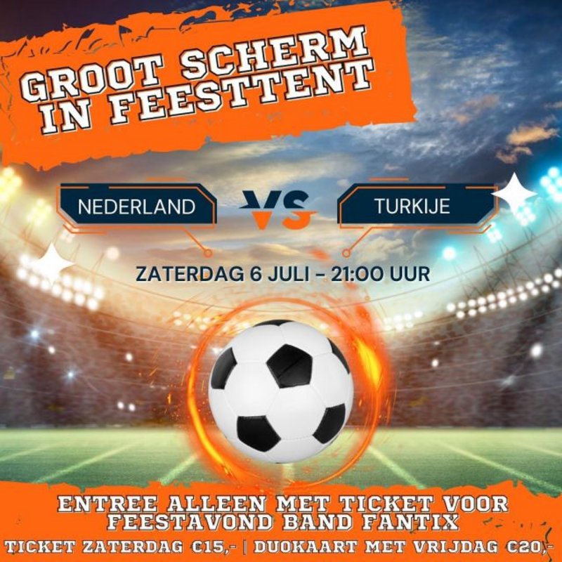 - Nederland - Turkije op groot scherm in de feesttent 6 juli