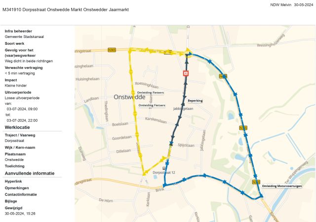 In verband met het houden van de Onstwedder Jaarmarkt zal op woensdag 3 juli de Dorpsstraat zijn gestremd van 9.00 tot en met 22.00 uur.