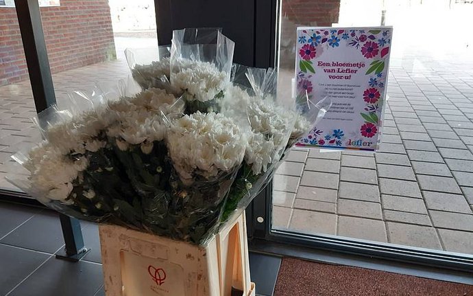 Bloemen voor bewoners van De Bolster in Onstwedde van Lefier. Leuke attente actie!. Foto: Welstad
