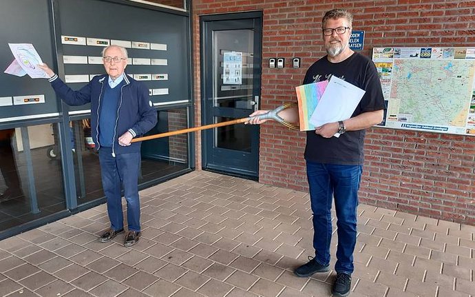 Eerste tekeningen van CBS De Rank voor bewoners van De Bolster! Er volgen er nog meer.... Op de foto staat bewoner W. Maarsingh en beheerder Jan…