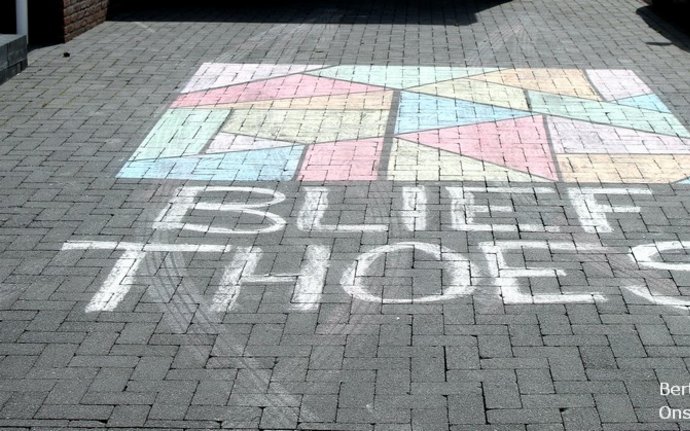 Een schildering op de inrit aan de Jensinghelaan 'Blief Thoes'. Foto: Bert Wolfs Onstwedde.info