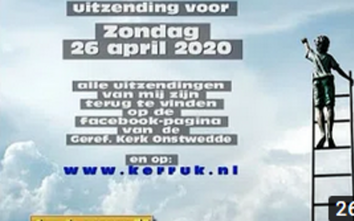 Kijk en luister mee naar een kerkdienst van zondag 26 april 2020 vanuit de Gereformeerde kerk. Video