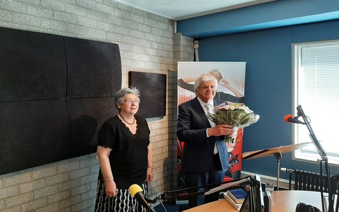 Zondagmorgen verzorgde, oud-Onstwedder, dominee Meijer een kerkdienst bij RTV Westerwolde. Hij ontving daarna een bloemetje, want hij vierde…