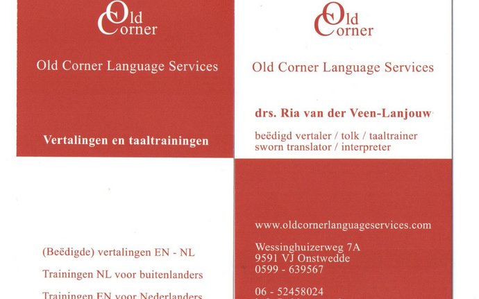 Nadat ze in 2004 zijn vertrokken zijn Ria van der Veen en haar man onlangs teruggekeerd naar Onstwedde. Ria is onder de naam Old Corner Language…