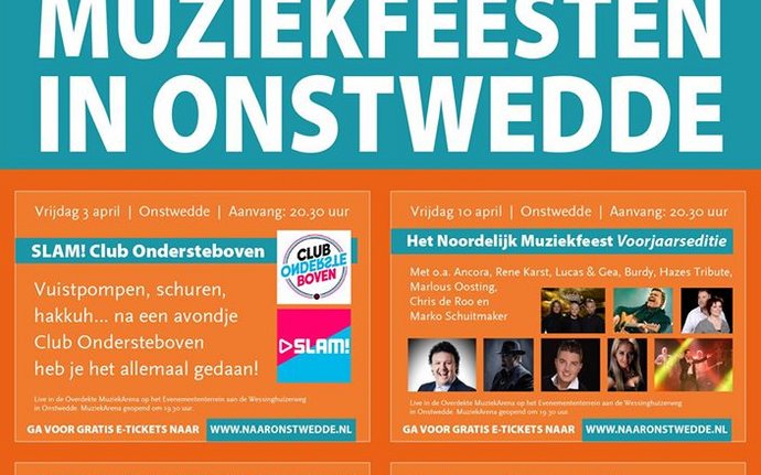 Grote muziekfeesten op 3-4-10-11 april in de MuziekArena op het evenemententerrein in Onstwedde. Ga voor gratis tickets en alle informatie naar de…