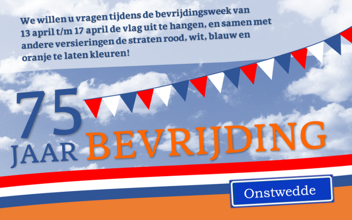 Verzoek van de organisatoren: hang de vlag uit tijdens bevrijdingsweek van 13 april t/m 17 april! En versier met vlaggetjes e.d. de straten rood, wit…