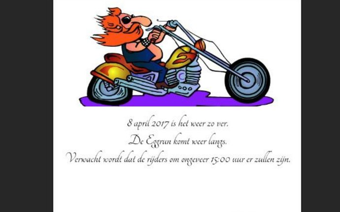 Op 8 april om ca. 15.00 uur is het weer zover. De Eggrun komt weer langs bij De Woldstee aan de Landlaan.