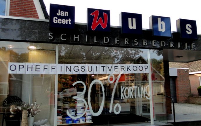 Extra hoge kortingen bij opheffingsuitverkoop Schildersbedrijf J.G. Wubs.Schilderbedrijf Jan Geert Wubs in Onstwedde houdt sinds vorige week…