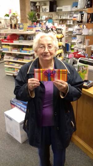 En de prijsuitreiking van de winnaar van vorige week, Johanna Veendorp van de Olinglaan.