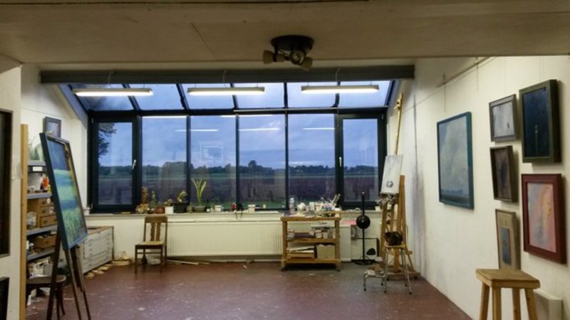 De ramen in zijn atelier bieden een geweldig uitzicht, waardoor hij vaak geïnspireerd raakt om te gaan schilderen - verschillende wolkenpartijen zijn al op het paneel vastgelegd. Vaak zijn het landschappen, maar ook andere objecten kunnen hem inspireren de kwast te pakken. Soms valt zijn oog op iets wat ‘toevallig zo staat’, en daar komt dan een stilleven uit voort. Ander keren gaat het om een doelgerichte opdracht, zoals hij recent geschilderd heeft voor een tentoonstelling in het Streekhistorisch museum. Ter ere van het 400-jarig bestaan van de Semslinie en het 250-jarig bestaan van het Stadskanaal, schilderde hij een reeks van 10 schilderijen met als thema ‘kolonisten aan het kanaal’. Deze zijn nu nog in het museum te bezichtigen.