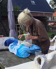Totdat opeens iemand aan haar vroeg of ze wel eens geboetseerd had. Nee dus. Maar ach, dat leek Jeanet ook wel leuk. In 2015 ging ze naar een cursus boetseren met was, naar levend model. Deze cursus werd gegeven door kunstenares Anita Franken in Haren. Hier heeft ze heel veel geleerd. “Als je moet boetseren naar een levend model, leer je heel anders kijken naar mensen. Een fotograaf of een schilder kijkt weer anders”. Via vrienden en kennissen kwamen er ook opdrachten om sculpturen van was te maken. Zo heeft ze bijvoorbeeld een beeld gemaakt van een dansend paar. En dat mochten niet zomaar mensen zijn, nee de opdrachtgevers vormden het paar. “Dus het moest nog lijken ook! We hebben eerst heel veel foto’s gemaakt terwijl ze in de danshouding stonden, vanuit alle verschillende hoeken. Vanaf deze foto’s heb ik uiteindelijk het beeld gemaakt.”
