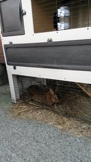 Na het bezichtigen van de keramiek koeien besluiten we nu maar eens de echte koeien te gaan bekijken, en voor we daar zijn komen we nog van alles tegen. De hond, een konijn, Zwanie haar paard waarmee ze met regelmaat een ritje door de omgeving maakt, en dan komen we aan bij het jongste grut, de kalfjes. Nieuwsgierig kijken ze op, maar besluiten uiteindelijk toch maar terug te deinzen in hun hok. Per jaar hebben ze zo'n 45 kalfjes en in totaal zijn er 100 koeien, allemaal verschillende soorten melkrassen.