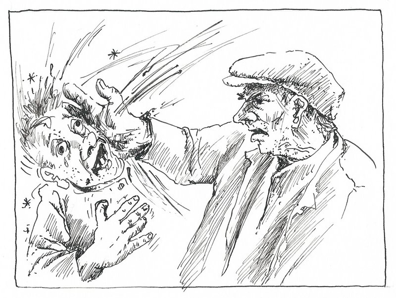 ‘Oompie’ is nog mor net begonnen te vertellen, of Wakker-Aine slagt hom inains mit de vlakke haand stevig tegen de kop aan, draait zok om en lopt vot.