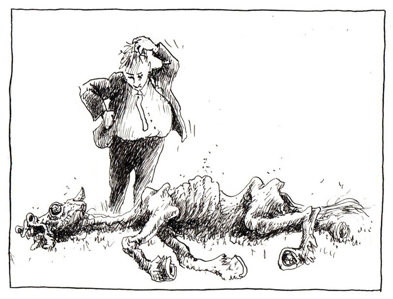 Ik vertel u, denk ik, niks nieuws als ik constateer dat er in onze tijd een geheel nieuw soort paardenliefhebberij is ontstaan. Ik bedoel: het volijverig trekken aan….. dode paarden.