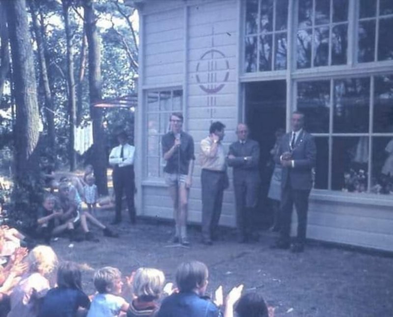 N.B. De foto van vandaag dateert (waarschijnlijk) uit het midden van de jaren (19)’60. De Spelweek vond toen nog plaats in het Mieghummeltjesbos aan de Dorpsstraat. In dat bos stond een horeca-accommodatie, die als centrale post dienst deed.
